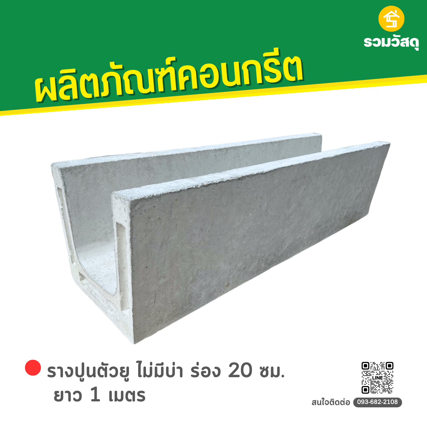รางปูนตัวยู ไม่มีบ่า ร่อง 20 ซม. ยาว 1 เมตร